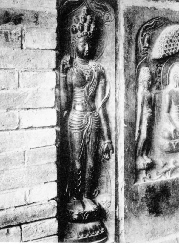 《國華》中的七寶臺(tái)唐代雕塑照片,定年703。圖片來源:Stanley K. Abe, “From Stone to Sculpture”, p.12.