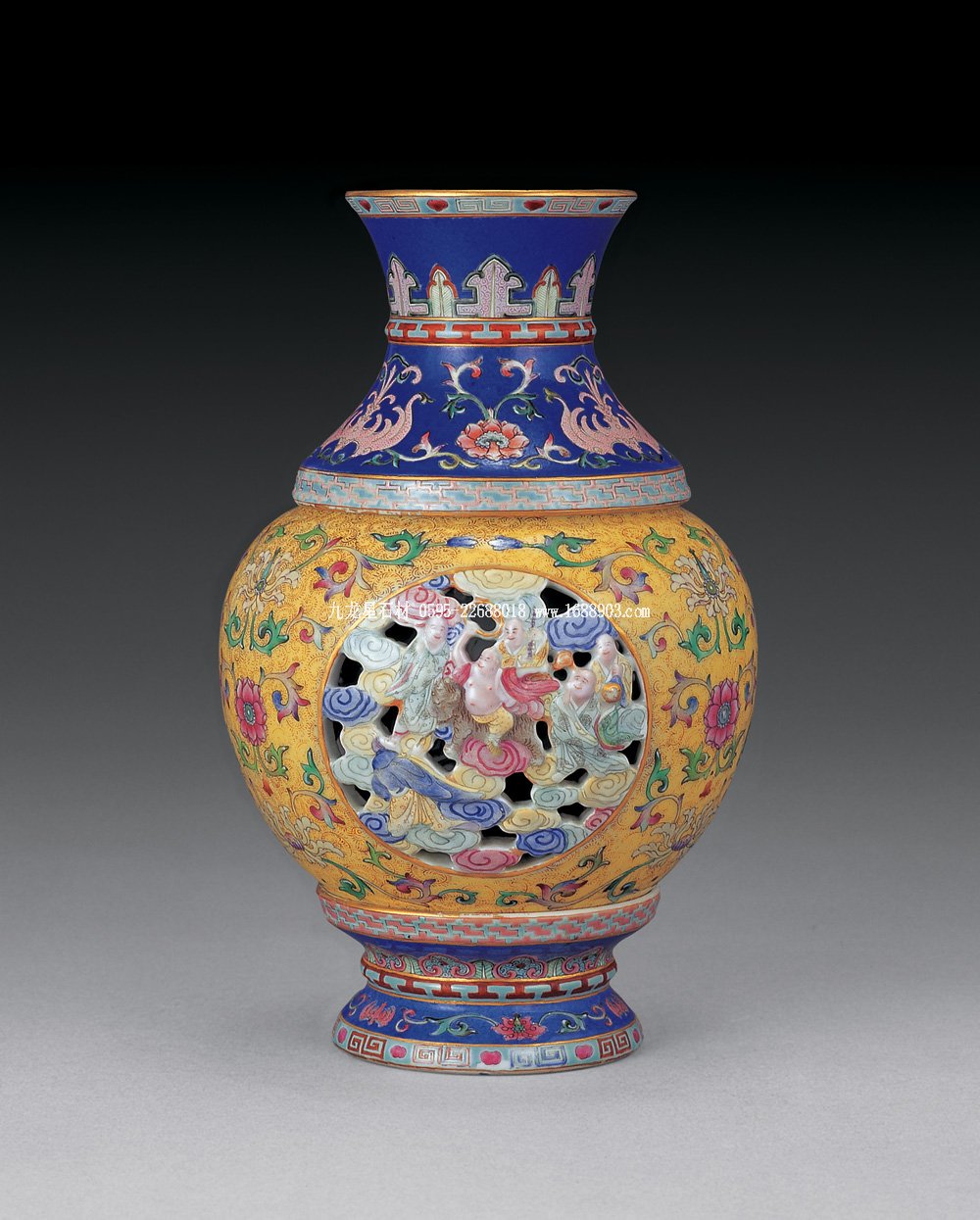 民國 粉彩透雕十八羅漢轉(zhuǎn)心瓶