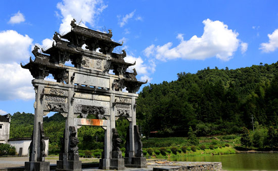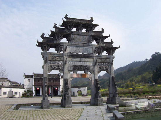 胡文光牌坊:俗稱西遞牌樓。建于明萬歷六年(公元1578年),距今已有400多年的歷史。牌坊高12.3米,寬9.95米,系三間四柱五樓單體仿木石雕牌坊,通體采用當地的“黟縣青”大理石雕筑而成,整個牌坊上下用典型的具有徽派特色的浮雕、透雕、圓雕等工藝裝飾出各種圖來,而每一處圖案都蘊含有極深刻的寓意。胡文光牌坊造型莊重、典雅,石刻技藝出眾,堪稱明代徽派石坊的代表作。