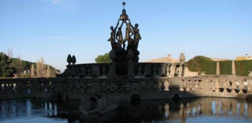 噴泉:蒙塔爾托主教入主別墅時期,他按照當年維尼奧拉的整體設計,繼續(xù)建造花園的中央噴泉--意大利風格主義雕塑家詹博洛尼亞(1529-1608)設計建造的"摩爾噴泉":4個石欄圍繞的水池,石欄上矗立著石雕花瓶,4個水池中央便是一組高聳的年輕運動員的輝煌雕塑,他們高高舉起象征著蒙塔爾托主教家族姓氏的"阿爾托山"。從遠處看去,這些有力的塑像十分宏大,黑黝黝地閃耀,以至于人們會認為它們是青銅,可是難以置信的是,它們是最好的、最堅硬的石灰華在陽光與水的作用下生成的一種堅硬如鐵的物質。后來意大利新古典主義雕塑大師卡諾瓦來到這里時,大為驚訝,他一邊拿起錘子輕輕敲打著它,一邊發(fā)出如此的感嘆:"它將比大理石更長久"。