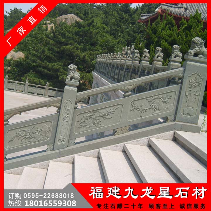 石欄桿想必大家都已經(jīng)不陌生了,石雕欄桿古稱闌桿,是橋梁和建筑上的安全設(shè)施。石雕欄桿的主要結(jié)構(gòu)為:立柱、柱頭、欄板、抱鼓、墊塊等。石欄桿種類繁多,各種石材石料都可制作,常分:花崗巖石欄桿、青石石欄桿、大理石石欄桿等,根據(jù)環(huán)境不同,選擇的材料不同。九龍星專門生產(chǎn)石雕欄桿,本公司提供石雕欄桿定制,石雕欄桿批發(fā),歡迎來(lái)電。