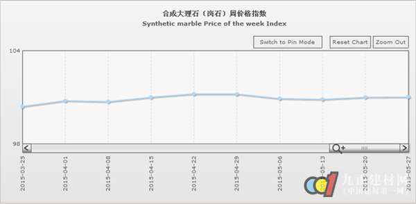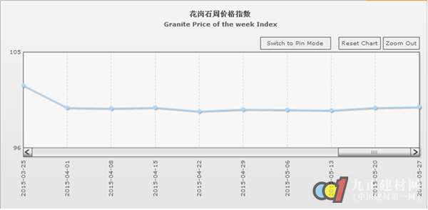 據(jù)“中國·水頭石材指數(shù)”系統(tǒng)監(jiān)測,20150527期石材周價格指數(shù)收報于98.71點(diǎn),環(huán)比略上浮0.08點(diǎn),上浮約0.08%。本周石材價格指數(shù)延續(xù)上周穩(wěn)中微升的趨勢、繼續(xù)微幅推升,其中其他石材類價格環(huán)比持平外,大理石、花崗石、合成大理石類價格均有所回升。大部分品類價格變化仍較穩(wěn)定,部分品種價格因市場需求有所增加及板面質(zhì)量差異小幅上揚(yáng)。