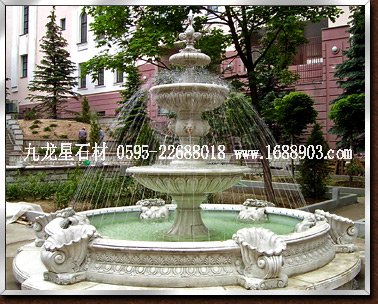 別墅大理石水琺高約約2.2,三層缽盤結構。羅馬式浮雕紋理。輔6只石雕噴水蝸牛為點綴。