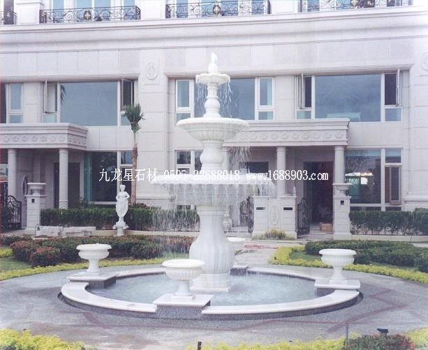 此漢白玉水缽凈高約2.8米,三層水缽結(jié)構(gòu)。配置四座漢白玉花缽做點(diǎn)綴。