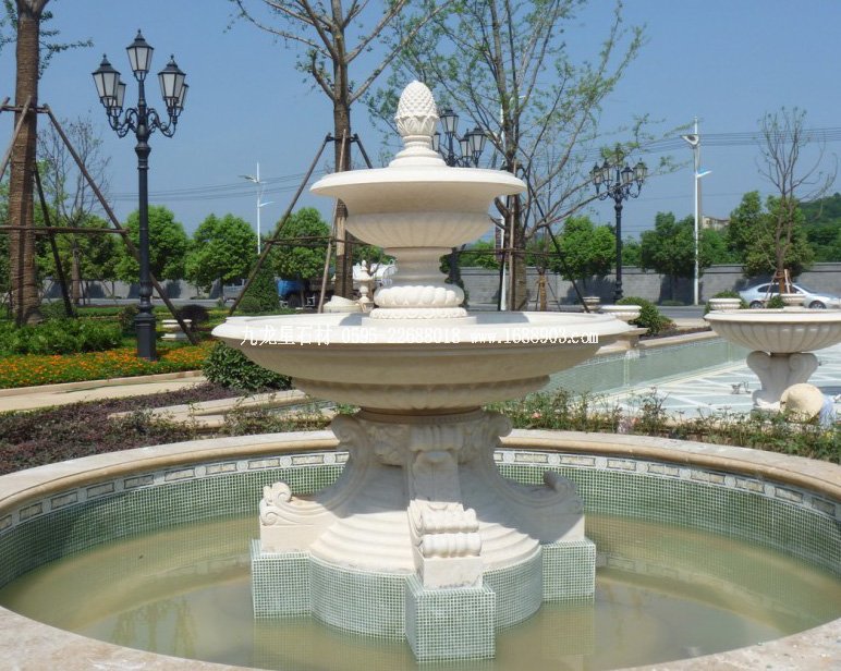 埃及米黃大理石水缽高約2.6米,雙層缽盤結(jié)構(gòu)。