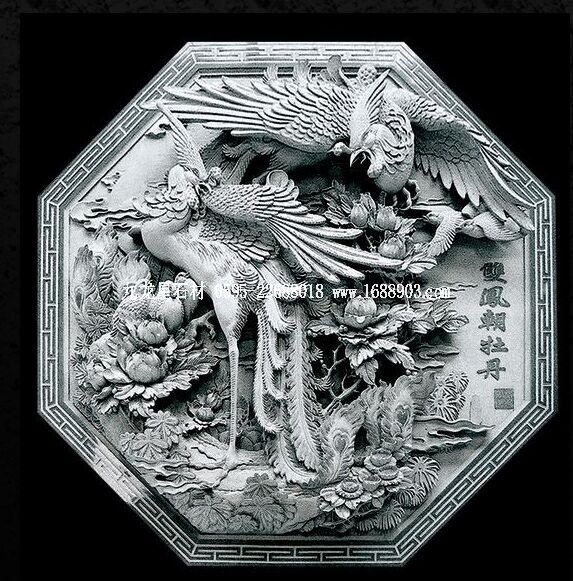 此浮雕所用材質(zhì)為青石,浮雕創(chuàng)作主題取至雙鳳朝牡丹浮雕。