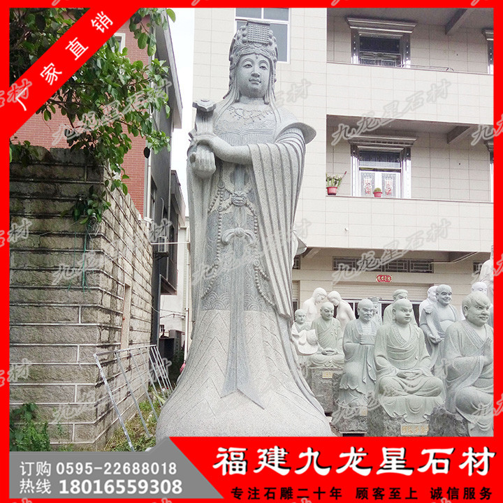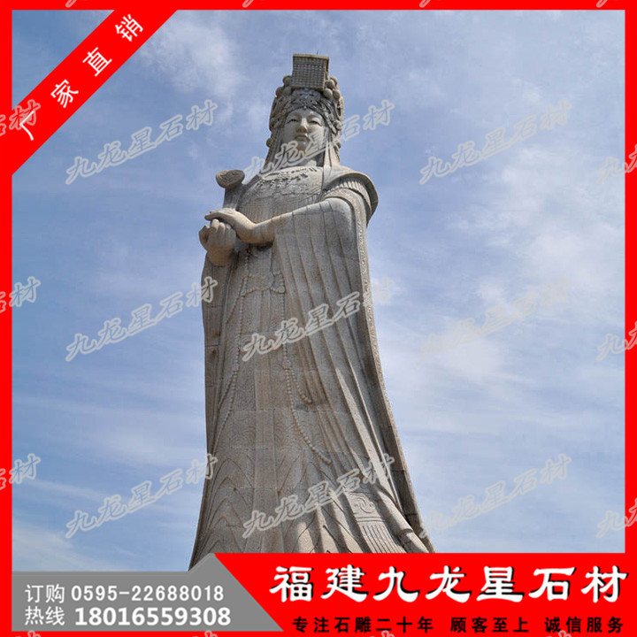 大型石雕媽祖中國民間在海上航行要先在船舶啟航前要先祭媽祖,祈求保佑順風和安全,在船舶上立媽祖神位供奉。這就是“有海水處有華人,華人到處有媽祖”的真實寫照。而影響所及,媽祖由航海關系而演變?yōu)椤昂I瘛薄ⅰ白o航女神”等,因此形成了海洋文化史中最重要的中國民間信仰崇拜神之一。