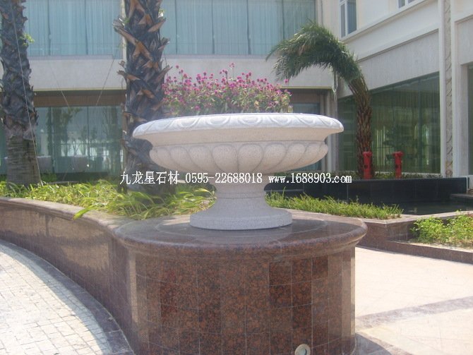 蓮花石材花盆高度約45公分,開口直徑約為50公分。荔枝面,蓮花造型。